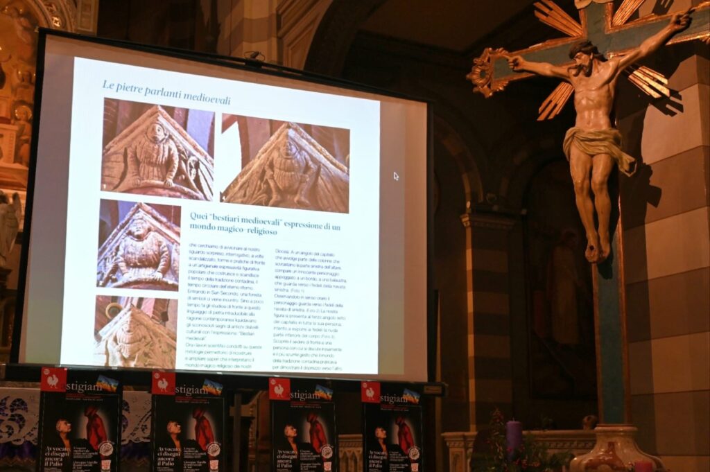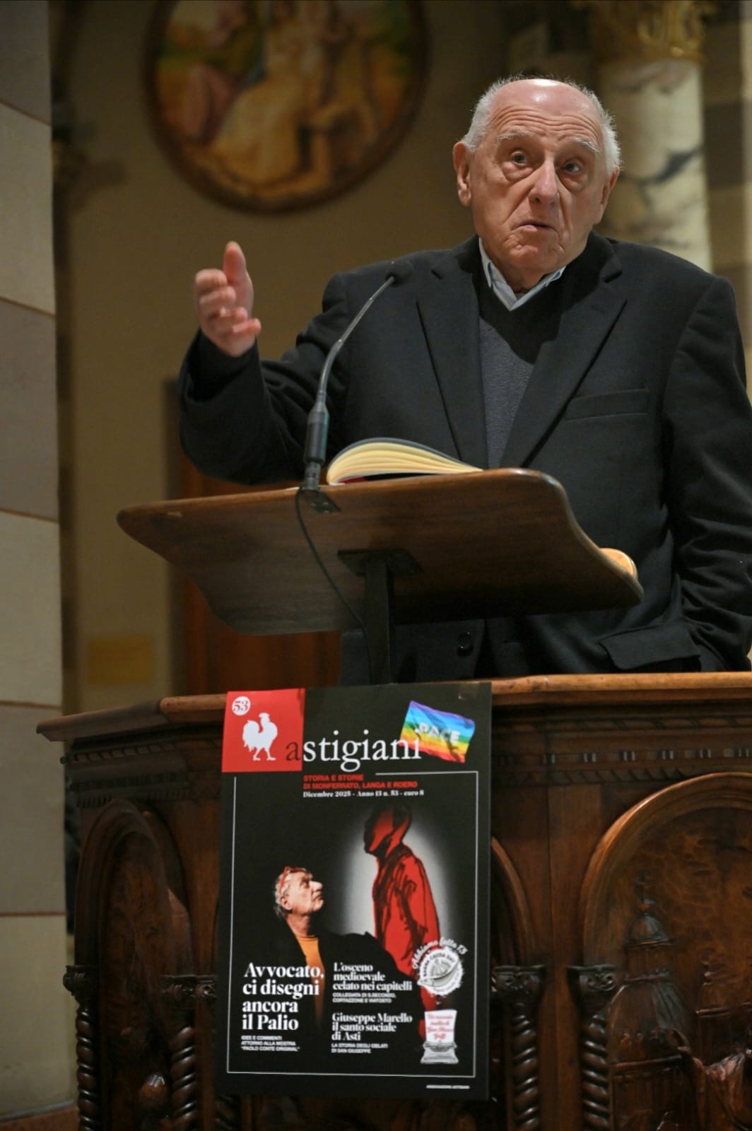 Piercarlo Grimaldi, presidente dell’Associazione Astigiani, è intervenuto sull’articolo dedicato alla simbologia medievale nei capitelli “osceni” d’epoca romanica presenti nella Collegiata di San Secondo, a Cortazzone e a Viatosto, soffermandosi sul significato antropologico delle raffigurazioni più bizzarre e dissacranti: «Il riso suscitato da alcune di queste rappresentazioni era un modo per avvicinare lo spirito alla felicità, cioè a Dio». Gino Anchisi ha invece contestualizzato la figura di Giuseppe Marello, un santo sociale. «San Giuseppe Marello era affascinato dalla causa risorgimentale, come molti altri cattolici che si batterono per l’unità d’Italia, un dato che forse oggi può sorprendere».